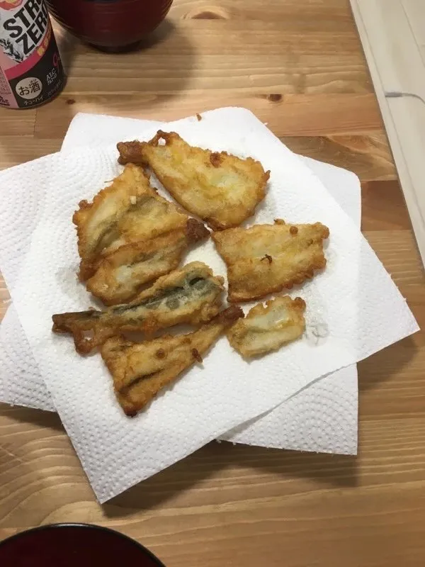 9匹釣れたので、天ぷらにしていただきました!