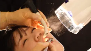今回は、この口腔内バキュームだけで吸引した場合、口腔内バキュームと口腔外バキュームを併用した場合の飛沫の拡散の違いについて知っていただきたいと思います。